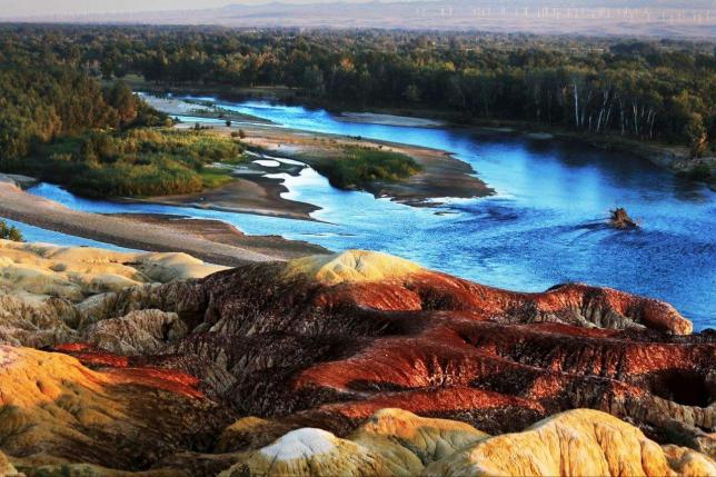 下午赴五彩滩景区,那就是以神秘、壮美而著称的五彩河岸,是新疆著名的风蚀雅丹地貌。在河水的映衬和夕阳的照射下,如同走进一个五彩斑斓梦幻般的世界,天上是七彩的云,地上是五彩的岸,中间是迷人的额尔齐斯河,遥相呼应,美丽画卷……“一河分两岸,两岸景不同”的视觉冲击,一定会让您流连忘返。可前往布尔津河堤夜市,品尝当地特色冷水烤鱼。