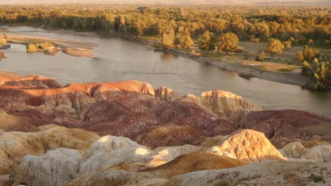 由于五彩滩特殊的雅丹地貌,在阳光的折射下出现红、绿、棕、黄等颜色,让人眼花缭乱,仿佛走进一个五彩斑斓的世界!