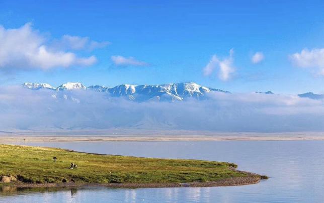宁静清澈的赛里木湖背靠雪山,每到六七月份,湖边那广阔的草原上便开满了星星点点的小野花,那走动着的羊群为这“大西洋最后一滴眼泪”点缀了生机。