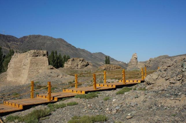 昌吉吉木萨尔县城以北约12公里处,是世界文化遗产、全国重点文物保护单位——北庭故城。