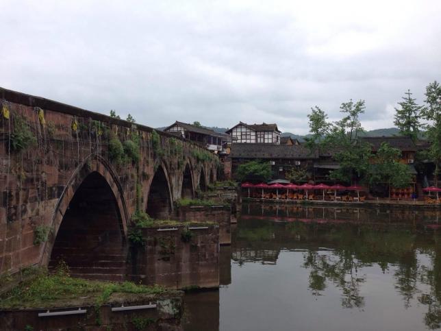 这座就是兴乐桥,白天和晚上大有不同,站在桥上从另一个角度来观赏的平乐古镇,静静感受当年卓文君和司马相如私奔至此的情意。