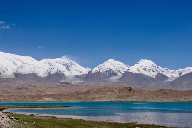 卡拉库勒湖是高原湖泊,它与布伦库勒湖同处帕米尔高原上布伦口乡的慕士塔格、公格尔冰峰脚下,两者相距直线仅十来公里,然而两湖的景色却大相径庭。
