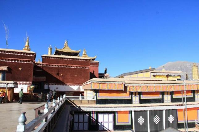 大昭寺位于拉萨市中心,又名“祖拉康”、“觉康”(藏语意为佛殿)。始建于唐贞观21年,是藏王松赞干布为纪念尺尊公主入藏而建 大昭寺是西藏现存最辉煌的吐蕃时期的建筑,也是西藏最早的土木结构建筑,并且开创了藏式平川式的寺庙市局规式。 大昭寺殿高4层,整个建筑金顶、斗拱为典型的汉族风格。碉楼、雕梁则是西藏样式,主殿二、三层檐下排列成行的103个木雕伏兽和人面狮身,又呈现尼泊尔和印度的风格特点。