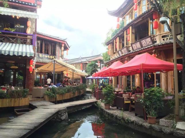 束河古镇是一座历史悠久、景点众多的古镇。古镇建于明代万历年间,又被人们称作龙泉村,这个古老的村落坐东朝西,古镇的后山则是巍峨壮丽的玉龙雪山的余脉,这里山峦青秀缠绵,林木苍翠,前来旅游的游客无不被这里的美景所折服、震撼。镇内的大石桥、大觉宫至今还保留完好,大觉宫里面的壁画生动地描绘了佛教中的人物形象。这里曾是丽江皮具的聚散地,古镇中还有一座建于清代的龙泉寺,里面供奉的是皮匠祖师孙膑。