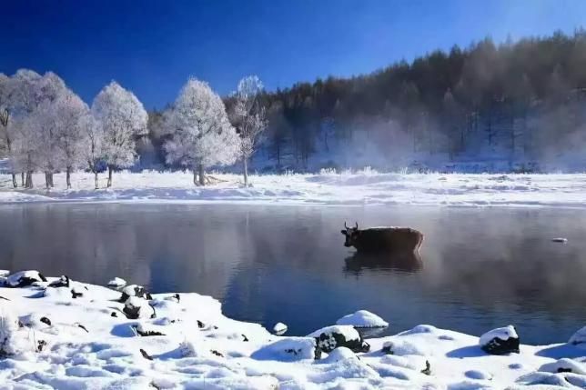 在这里,可以欣赏到雾凇奇景,那是堪比雪乡的惊艳;这里浩瀚无垠的星空繁星闪烁,夜晚安静的只听得见心跳声;在这里,可以看到河流-40℃不结冰的奇迹!