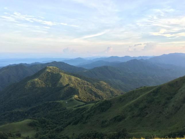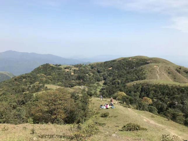海拔1100米之上的区域便是高山草原,它有个很好听的名字,叫“百鸟堂营地”。由众多小山包组成的草原虽说算不上真正意义上的大草原,但也算意境清新:绿草小山包连绵起伏,一眼望不到边;五彩缤纷的野花点缀在每个角落,处处显露着无限生机。草原上的气温比山下低6摄氏度,如果在山上扎营,可以看到日出、日落的绚丽景观。