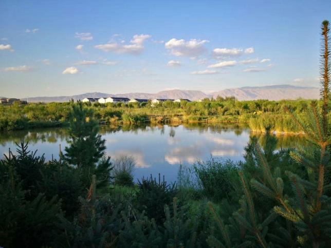 张掖国家湿地公园占地面积61622亩,其中有湿地25995亩,地处张掖城区北郊,是沼泽湿地、湖泊湿地、河流湿地和人工湿地的复合体,分布的植物有45科124属195种,有常见动物116种,是一片天然的生态园区,也是张掖城市的“加湿器”和“加氧器”。2009年12月被国家批复命名为“张掖国家湿地公园”。