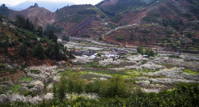 五山梯田位于乐昌市五山镇,驱车约1小时。主要是指五山的北部石下村一带,最出名的是上黎家。在杨东山十二渡水自然保护区南部。经过世世代代的精雕细琢,形成了多姿多彩的壮美梯田,景色相当壮丽。