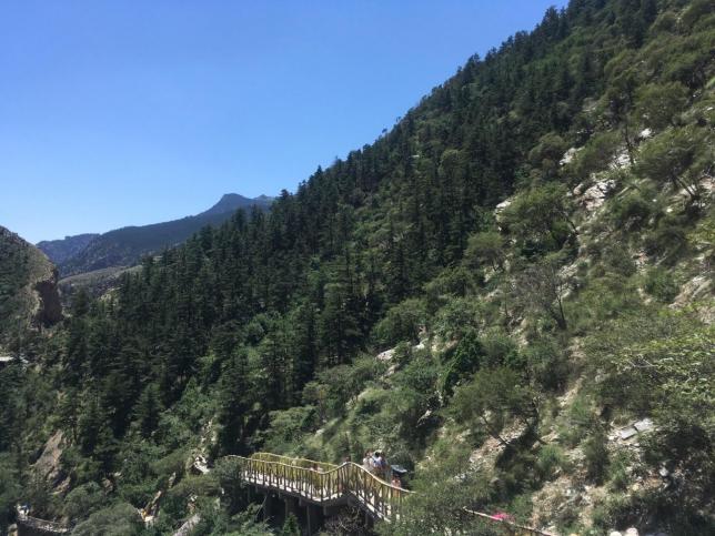 苏峪口国家森林公园,山体巍峨,森林茂密,自然风光秀丽,人文景观独特。近万公顷的范围内,油松、杜松、云杉等天然林木一望无际;樱桃、丁香、蒙古扁桃等珍稀灌木遍布山谷沟壑。尤其是当您踏入国家森林公园的深处,登上青松岭的峰顶,人处在苍茫林海之中,低头看百丈悬崖,放眼望郁郁葱葱。