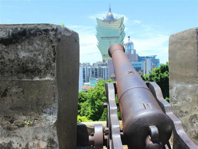 位于大三巴牌坊侧,又名圣保罗炮台、中央炮台、大三巴炮,属圣保禄学院和圣保禄教堂的一部分,是中国最古老的西式炮台之一。炮台呈不规则四边形,四个墙角外突成为棱堡,可架设多达32门大炮,且可以同时防范来自两个方向的攻击。大炮台上的古炮在1622年抵御荷兰人的入侵时,发挥了重要的作用。可以在这里俯瞰澳门,观看到澳门半岛标志性建筑--新葡京娱乐场,是合影留念的好角度。
