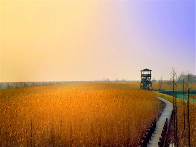 位于崇明岛西端,是长江畔的一处滩涂,更是观潮、寻鸟、赏日落的绝佳之处。从大门口一直通到长江边、近2千多米长的木栈道,漫步于芦苇丛中的栈道,领略长江滩涂风光。偌大的湿地上长满了芦苇,并夹杂着多种植被群落,放眼望去,茫茫的一片绿色海浪,美得令人震撼。湿地素以观鸟胜地出名,这里有大量鸟类的栖息地,每年11月至次年3月是最佳观鸟季节。西沙湿地还是看落日的最佳场所,堪称崇明一景的“西沙日落”。在滩涂的映衬下,显得与众不同。