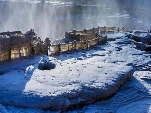 气势如山崩地裂的壶口瀑布,在冬季时期,没有了春夏秋三季的喧嚣模样,有的只是寒冬里静穆的模样。