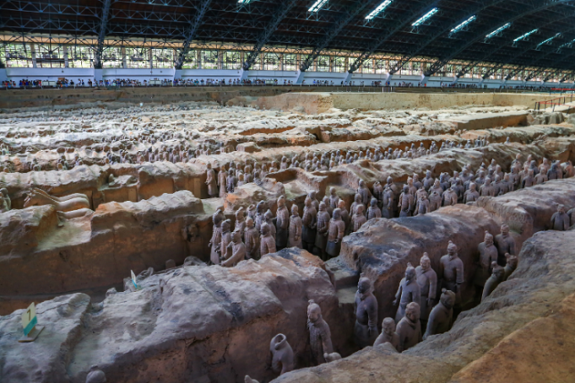 秦始皇兵马俑博物馆,又称兵马俑、秦兵马俑,是秦始皇陵的陪葬坑,和秦始皇帝陵博物馆为同一个景点,采用一票制。秦始皇兵马俑素有世界第八大奇迹之称,这里出土的一千多个士兵陶俑,形象各不相同,神态生动,是中国古代雕塑艺术史上的一颗明珠,被誉为“二十世纪考古史上的伟大发现之一”。