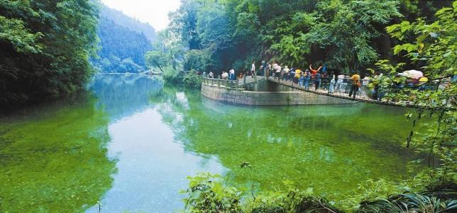 清音平湖位于清音阁,系绿色生态湖,水质纯净,清澈透底。四周青嶂翠峦环抱,古木参天,湖如碧玉嵌入其中,深深浅浅,点点滴滴,不知是树映绿了湖,还是湖染绿了树。