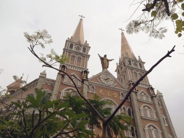 被人习惯称为宝安天主教堂,教堂楼顶金色的耶稣像张开双臂,仿佛在迎接大家的到来。教堂外观很现代,也比较宏伟,有很多人把这里作为婚礼的举办地哦。