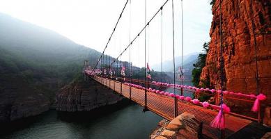 贞义岛的峭崖上有巨石挺立,姿若雄鹰傲视;左侧断崖悬垂,形似神龟探头。从入口西去,仿佛进入了一个绚丽的艺术画廊,前段是宋祖峡,当年赵匡胤在此诗以言志,称帝后又派人将诗刻在岩石上,至今字迹尚存。