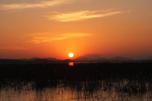 水的尽头是山,既有海滩浴场的秀丽,又有大漠戈壁的雄壮。早晨,沙滩在太阳光的照射下,金光闪闪,故又称“金沙滩”。在银沙滩时是太阳光最强的时候。走上沙滩,只觉白的晃眼。但沙滩之大却出乎我们的预料。让我们赞叹不已。人的力量真是不可小视,几十年硬是把这丘陵山地填成了平面沙漠,还如此广阔。
