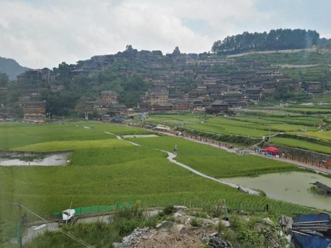从拐点往下看,郁郁葱葱的山林和层层叠叠的梯田美景,映衬着错落有致的乡间小屋,田园风光一一进入眼帘,别有一番风味。