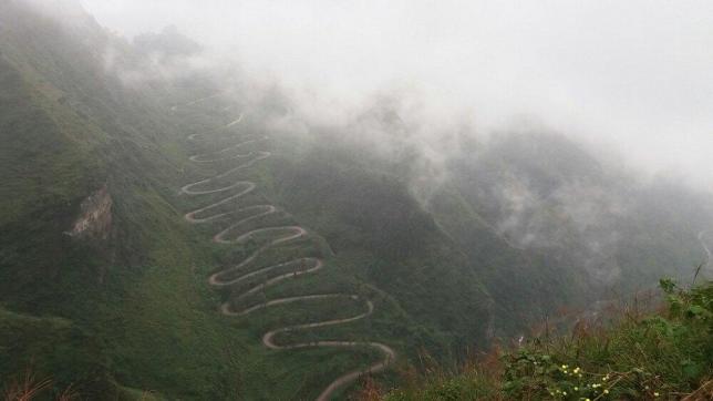 这段号称“贵州弯道最密集的盘山公路”,位于桐梓凉风垭。在短短12公里坡路中,它就已经拐了72次回头弯。这条山路惊险万分,因此被称作“黔道更比蜀道难”。在如此密集的转弯路上行驶,必须打起十二分精神,容不得半点懈怠和分心。从高处往下看,72道拐就像一条巨蟒,缠绕着凉风垭山,有着惊心动魄的壮阔之美。