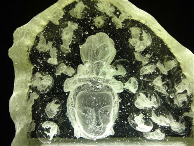 这座上海唯一的琉璃艺术博物馆,由台湾艺术家张毅、杨惠姗创办并设计。博物馆的外墙上攀附着两朵巨型金属网牡丹花,好似从琉璃中绽放出来:白天,花影静谧;入夜,花姿绚丽,呈现出浓郁的现代艺术意味。近百件历代琉璃珍品在馆内展出,不仅有中国古代人民的劳动结晶,亦有曾亮相19世纪巴黎世界博览会、被誉为“世界琉璃之父”的法国艺术家Emile Gallè的作品;54件造佛作品则集中展示了艺术家杨惠姗23年的智慧与辛劳。展品中最令人惊叹的是耗时10年创作的“今生大愿”观音造像,这尊源自敦煌莫高窟元代壁画的立体复原作品是该博物馆中唯一一件非琉璃材质的作品。其上空是精心设计的多媒体投影——飞天,观音的座下是一朵朵剔透的黄色琉璃莲花。