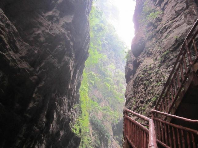 武陵山大裂谷位于重庆市涪陵区城东南约45公里的武陵山乡境内,系国家4A级旅游景区。景区以地球上最古老的“伤痕”—剧烈地壳运动所致绝壁裂缝称奇,有着“中国第一动感峡谷”美誉。景区1380米天然落差,10公里喀斯特地貌原生态裂谷,景区森林覆盖率达95%以上,夏季气温平均气温低至22摄氏度,负氧离子含量每立方厘米高达10万个以上。