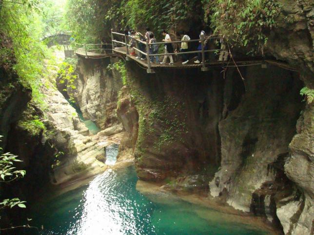 神女溪景区,位于长江三峡巫峡的腹心,在著名景区神女峰对岸。全长30公里,乃峡中之奇峡,景中之绝景,是人迹罕见的原始处女谷,传说七仙女曾在此沐浴。峡内壑谷曲折,峭壁千丈,碧峰万仞,群岩蔽日,天开一线,穿行其间,时而大山阻隔,时而峰回路转。