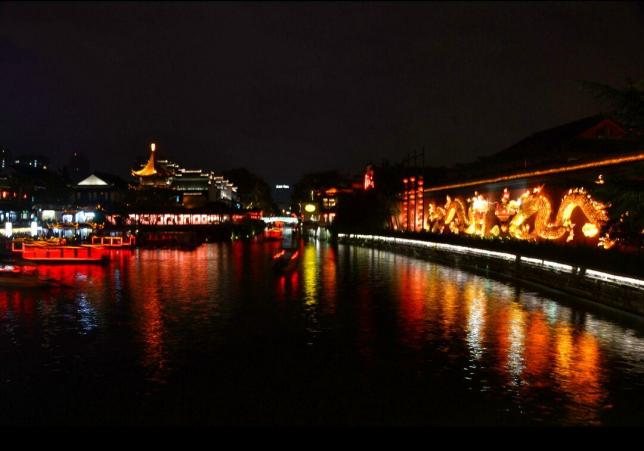 逛园林,我从来都不会照着导览图走,假山、亭台、阁楼,走着走着总会有“柳暗花明又一村”之感。我到瞻园的时候,正好遇上下雪天,腊梅初开,而梅花却是含苞待放的。到了春节那时,到处开着梅花的瞻园肯定更美。白天游玩瞻园,夜晚要逛的非秦淮河畔莫属了。街道虽然不长,但这里却承载了不少历史上的传说与故事。