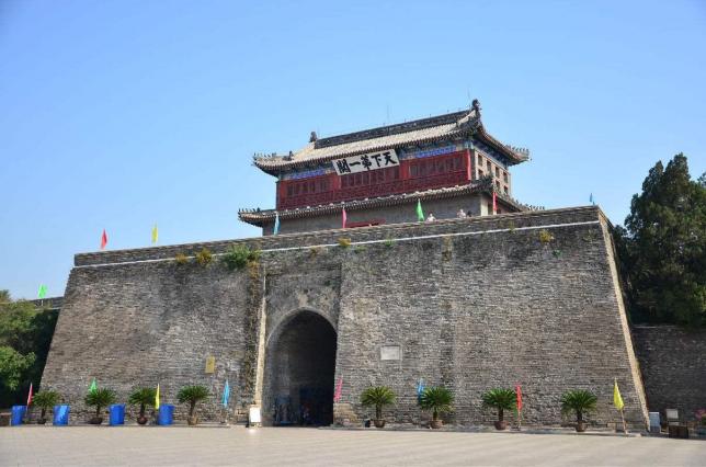 长城三大奇观之一,为明长城的东北关隘,地处河北秦皇岛市东北部,因其依山襟海,故名山海关。山海关城周长约4千米,与长城相连,以城为关,城高14米,厚7米,有四座主要城门,多种防御建筑。包括“天下第一关”箭楼、靖边楼、牧营楼等。