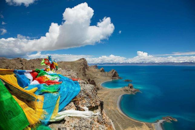 据说,很多人因为纳木措的一张照片去了西藏。纳木措有像海一样辽阔的湖面,玛尼堆连成的轨迹,摇曳的五彩经幡,纳木措圣洁的美确实让人无法抗拒。纳木措的湖面呈天蓝色,水天相融,浑然一体;湖水就像一颗晶莹的宝石,镶嵌在羌塘大草原上,以其瑰丽迷人的湖光山色和美丽的传说,陶醉了众多的游人和朝圣者。