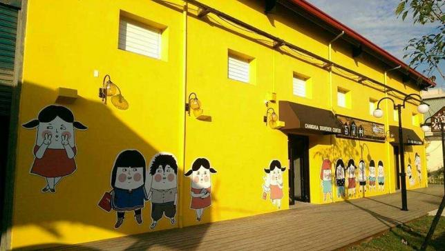 彰化百宝村改造自荒废老谷仓,重新打造地方特色产品旗舰形象馆。墙上有许多有趣的插画,出自人气插画家之手,利用在地特色融入其风格中,展现百宝村现代活力与历史风味相结合的冲突感与特色。