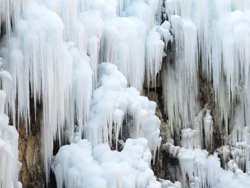 蓝田流峪飞峡冰瀑比抱龙峪、黑山岔的冰瀑还要壮观一些。若是夏天来这里,这儿不过就是个普通的小瀑布群,但冬天结冰的冰瀑群,风光却是远胜过夏日。蓝田流峪飞峡旅游区位于蓝田县九间房乡境内,老312国道横贯景区,交通十分便利。从公王岭蓝田猿人遗址入山,经古栈道遗址沿千年水道向南,可尽览流峪飞峡奇观。流峪潭、遇仙池、象池、瑶池、天池,一潭四池错落有致。适逢冬日冰冻,一路冰瀑达2公里之多。让你仿佛掉落在晶莹剔透的冰雪世界中。