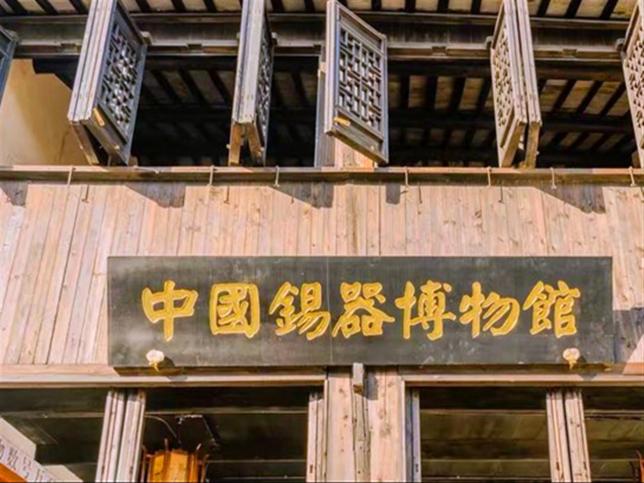 古镇中心街上一幢保存完好的明代古建筑里,藏着中国最大的锡器博物馆。虽然门厅不宽,但宅院特别深,前厅后堂,共四进。馆内利用展橱和半敞开式展台陈列,综合图片、实物、场景复原等展示手段,突出采锡、炼锡、打锡等文化特色。