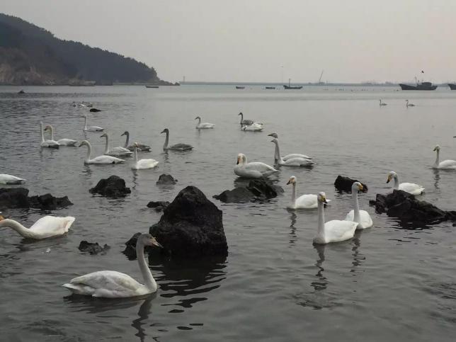 烟墩角是个依山傍海、景色秀丽的小渔村,每到寒风飘雪时节,成群结队的大天鹅就来到这里,在碧波荡漾的海湾里,或追逐戏水,或引吭高歌,或翩翩起舞,使人如临仙境,如梦如幻。