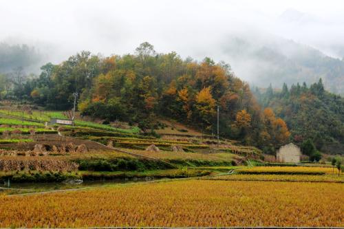 深入花耳坪,会突然给人一种“浓密感”。村落两旁是密密麻麻的山茱萸树,树林把本来不大、沿河而建的村落隐藏起来,10月底前山茱萸树叶落尽,果子变得通红,漫山遍野就有了燃烧般的壮丽,是摄影的绝佳场所。