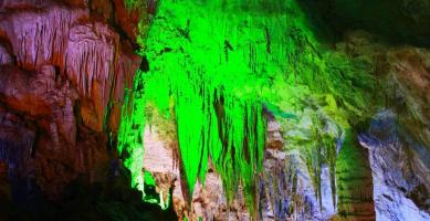 芙蓉洞于1993年5月被发现,在世界已发现的80余种岩溶洞穴沉积物中,芙蓉洞内发现的物种就有近70余种,被称为“内容丰富的洞穴科学博物馆”。世界洞穴协会主席也曾评价其为“世界最好的游览洞穴之一”,是中国地下最美丽的地方。 芙蓉洞主洞长2700m,总面积3.7万㎡,其中最为壮观的是“辉煌大厅”,面积达1.1万㎡。另外还有宽15m、高21m的石瀑和石幕,光洁如玉的棕桐状石笋,粲然如繁星的卷曲石和石花等,其数量之多、形态之美、质地之洁、分布之广,为国内罕见。