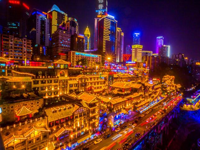 洪崖洞是逛山城老街、观赏两江风光、品尝当地美食的好去处。由纸盐河酒吧街、天成巷巴渝风情街、盛宴美食街和城市阳台四部分组成,从最底到顶层共有11层,隔层功能不同,有餐馆、酒吧及土特产商铺等。以最具巴渝传统建筑特色的吊脚楼为主体,依山就势,顶层可远观江景,夜晚时候灯火通明,堪称山城一景。建议晚上去洪崖洞看夜景,灯光开启的时候,十分震撼。