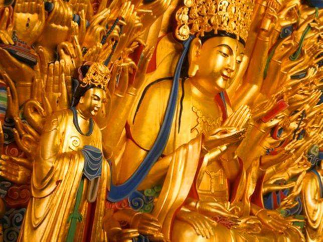 大足石刻是石刻群的统称,包含宝顶山、北山、南山、石篆山、石门山5处,一般人们所提及的大足石刻大部分都指的是宝顶山石刻。大足石刻是佛教题材的石刻,非常精美壮观。每个雕刻都有自己的故事,而且还是彩色的,显得十分逼真,甚至活灵活现。特别是石洞中的佛像,表情神态自不必说,就连衣服的流苏都给人感觉是一阵风就可以吹起来。
