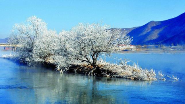 雾凇岛位于吉林市北部30多公里处的乌拉街满族镇,它是松花江上冲击而成的江中小岛,是中国最著名的雾凇观赏胜地。每到寒冬,不冻的江水中升腾的水雾遇冷,在树上凝结为霜花,从远处看正是传说中的玉树琼花,美不胜言。