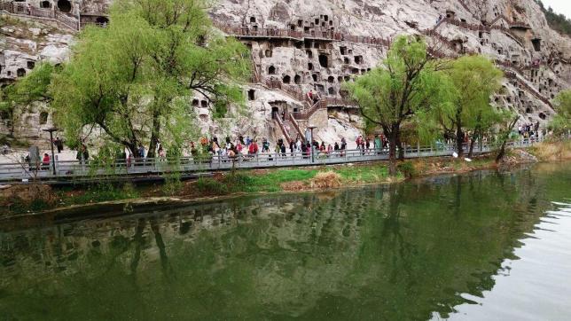 龙门石窟是中国四大石窟之一,被称作佛教艺术宝库。全山造像11万余尊,最大的佛像卢舍那大佛,通高17.14米,头高4米,耳长1.9米;最小的佛像在莲花洞中,每个只有2厘米。