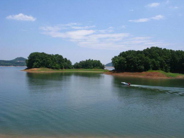 南湾湖水域面积80平方公里,是杭州西湖的12倍,湖内水天相接,烟波浩淼。61座岛屿错落分布,景色各异,湖的上游是"信阳毛尖"主产地,湖中盛产南湾鱼。