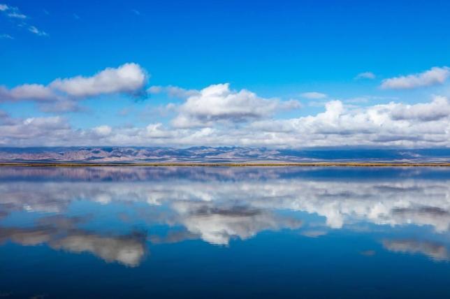 这里的冬天是一派雪一样晶莹的世界,也构成了一幅水墨般的山水画。一望无际的空旷,极致的宁静,似乎整个世界只能听到自己的呼吸声,映入眼帘的,只有天上的蓝天白云,和地上那分不清到底是真实还是虚幻的倒影。置身在这洁白无垠的盐的世界,会让人感受到地阔天园,美的博大。