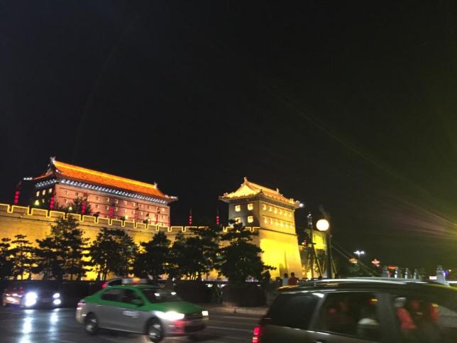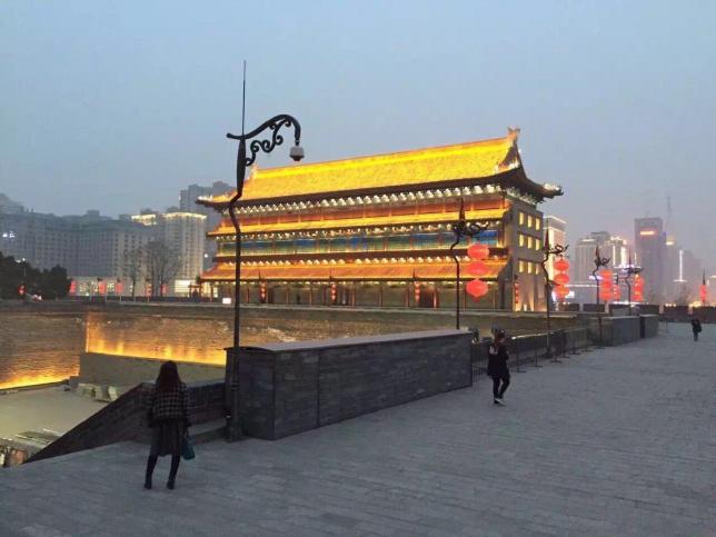 在落日昏黄的余晖中,缓缓的走在城墙脚下,看着绿树随风摆动,河水粼粼微波,石块青青绵延渐远,听着鸟儿啁啾,看着灯光点点,会有一种时光穿越的错觉,不知是古还是今。