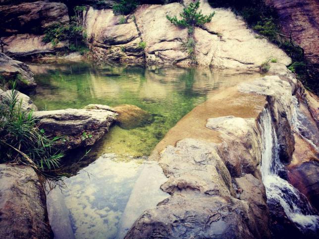 九龙池位于牯牛降东侧,在赤岭乡倪村南边的一个大山谷中,这里山谷幽静,丛林丰茂,九池溪水碧绿澄澈,如大小不一的珍珠翡翠散落其间。四面群山如聚,轻松古柏,生意盎然,无论从哪个方向看过去,均如巨幅山水画卷,景色秀美绝伦。