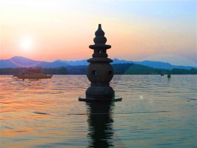 首批国家5A级旅游景区和中国十大风景名胜之一,2011年被列入世界遗产名录。以一山、二塔、三岛、三堤、五湖为基本格局,著名的西湖十景点缀其间,自然与人文相互映衬,美不胜收。出现在人民币壹圆纸币背面的三潭印月景观,亦体现西湖在中国风景名胜中特殊的地位。