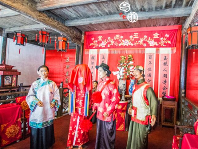 江南民俗馆展示了晚清至民国时期乌镇民间有关寿庆礼仪、婚育习俗和岁时节令等民俗 。精彩的蜡像塑出了一幕幕婚丧嫁娶的话剧,处处融入了对美好生活的期盼。 衣俗厅展示了江南民间的穿着习俗,可以从中西合璧的风格中窥视历史的缩影。节俗厅通过一年不同节气中乌镇人不同的生活习俗,生动地展示了一幅江南水乡风情长卷。婚俗厅以喜堂拜堂为中心,通过新人、媒婆、父母等人物以及花轿、嫁妆等实物展示婚庆的热闹场景。寿俗厅以老人祝寿为主题,通过厅堂的吉庆实景、字画和做寿物品,展示了敬老尊老的中华传统。