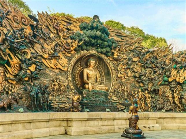 降魔浮雕位于灵山景区内,九龙灌浴广场之后,就能看到降魔成道浮雕。这里记载着佛祖降魔成道的故事,整壁由紫铜锻造而成,是一件不可多得的艺术珍品。想要来此观看的游客,最好跟着导游参观,这样才能懂其中的深意。