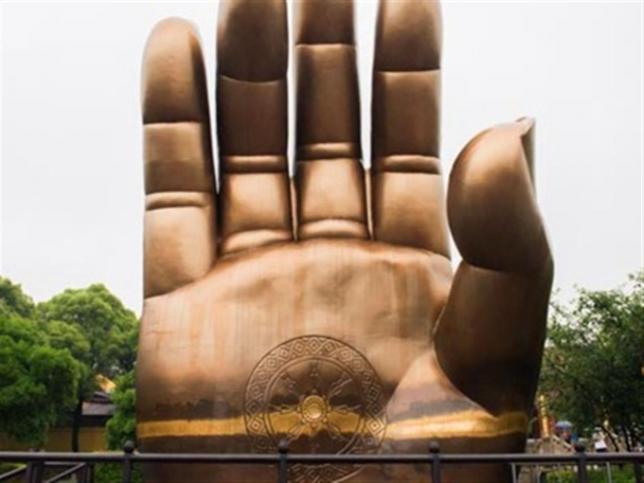 “天下第一掌”位于无锡灵山胜境佛手广场行道的左侧,是铜质的手掌,形状、大小完全复制灵山大佛的右手。佛掌的印相为“施无畏印”,寓意驱除众生痛苦,抚慰众生心灵,令众生无畏无惧。因“佛手”与“福寿”谐音,所以有摸佛手增福添寿的说法。“好运摸佛掌”使人人得以与佛亲近,祈佑平安。