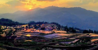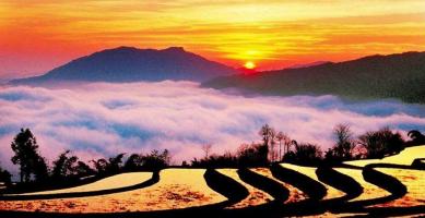 元阳梯田位于云南省元阳县的哀牢山南部是哈尼族人世世代代留下的杰作。元阳哈尼族开垦的梯田随山势地形变化,因地制宜,坡缓地大则开垦大田,坡陡地小则开垦小田,甚至沟边坎下石隙也开田,因而梯田大者有数亩,小者仅有簸箕大,往往一坡就有成千上万亩。