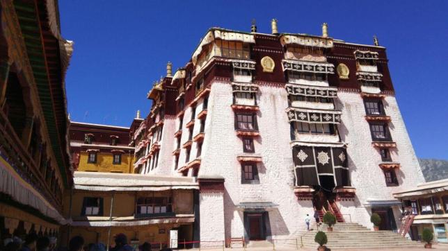 布宫主要由红宫和白宫组成,中间最高的红宫是举行宗教仪式的重要场所;其他白色的建筑为白宫——红白两色代表当时藏区政教合一的制度;山脚下还有几栋黄色的建筑。丰富的颜色不仅让布宫更加美观,还蕴含深刻的含义:红色代表统治三界,白色代表寂静,黄色则寓意长寿无疆、福源不断。布宫还有一些附属建筑,包括山下的雪城和后面的宗角禄康公园等。