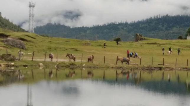 草甸中,溪流蜿蜒,泉水潺潺,草坪上报春花、紫苑花、草梅花、马先蒿花等成千上万种野花怒放盛开,颇具林区特色的木篱笆、木板屋、木头桥及农牧民的村寨星落棋布、错落有秩,勾画了一幅恬静、优美的“山居图”。